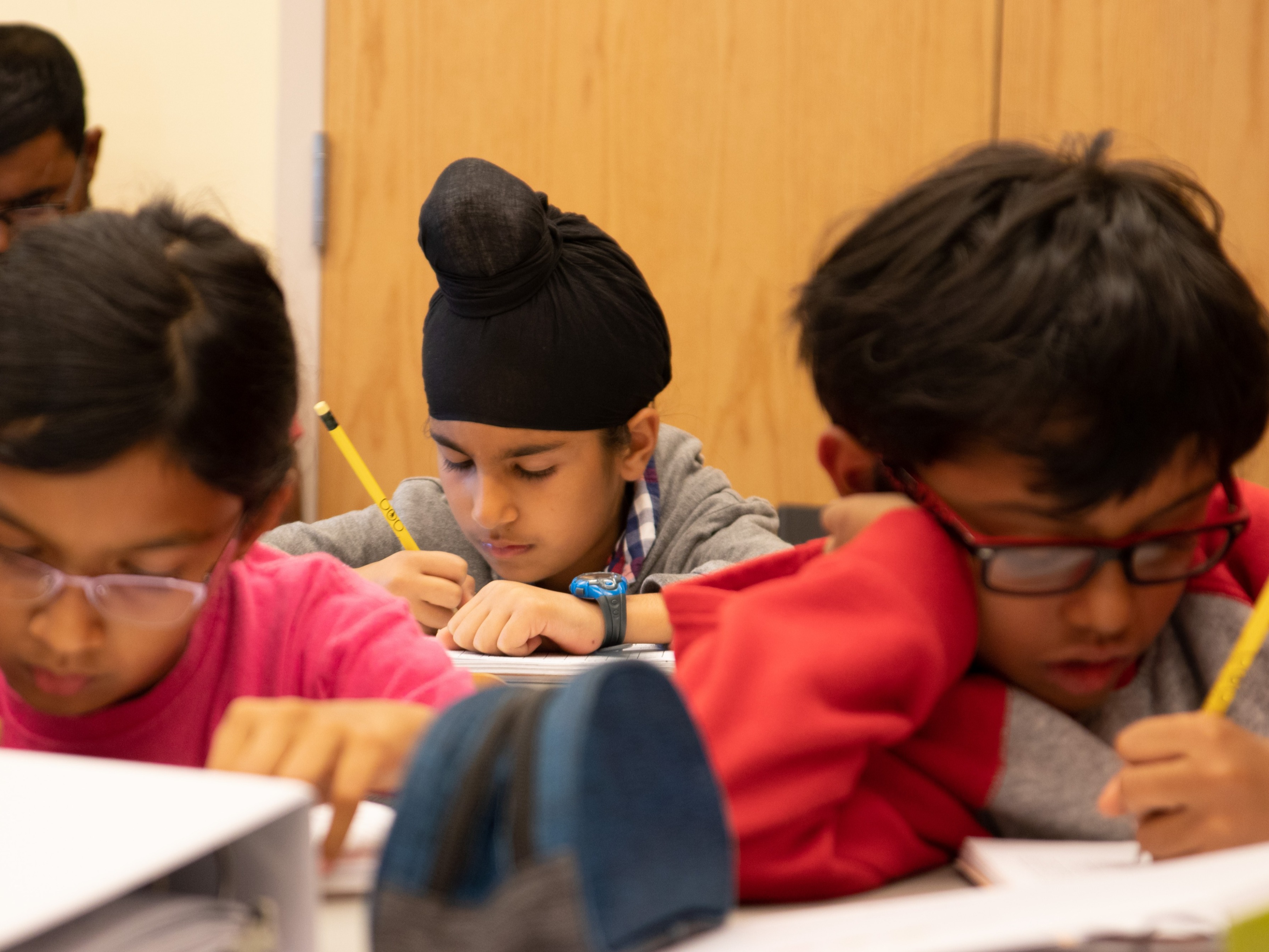 The Grade 4 curriculum solidifies many concepts from earlier grades with a weekly 1.5-hour class. In this grade, students construct and understand increasingly complex sentence, review and consolidate their editing, writing, and presentation skills, and demonstrate these skills in team debates. Their knowledge of punctuation, grammar, and sentence structure is deepened, and they are introduced to more technical qualities of the English language. Students have a more sophisticated novels, memory work, and group presentations that build and strengthen their time management, social, and communication skills. Cursive writing, drills, poetry, short stories, treasure hunt and speeches continue to be key components.